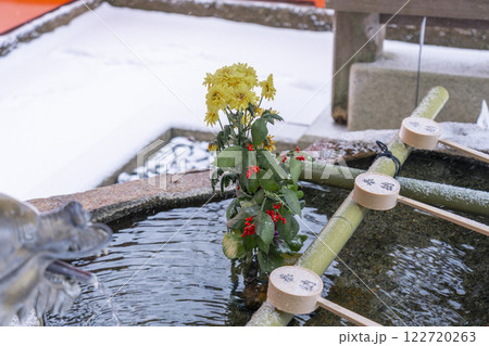 冬の鞍馬寺 転法輪堂前の手水舎の龍