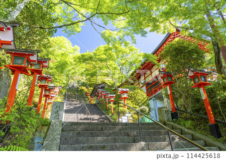 新緑の鞍馬寺 境内入口の石段 京都市左京区