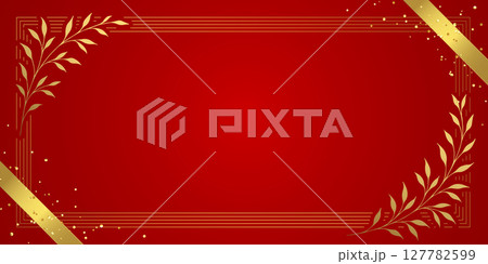 エレガントな赤と金の植物フレームの背景