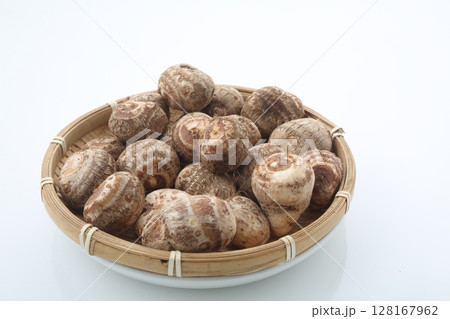 竹笊に入れた洗った里芋アップ
