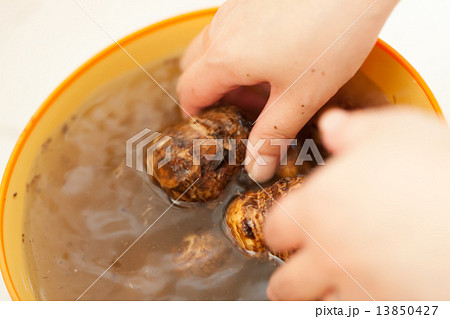洗った里芋コロコロ