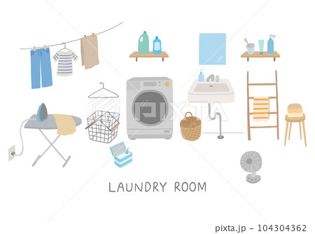 洗面所と洗濯機まわりの手描きイラスト