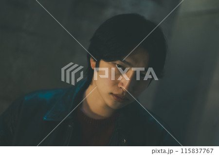 頬杖をつく若いアジア人男性(考える,検討,悩む,選ぶ,困る,悩み)