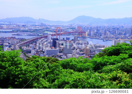 高塔山からの眺望 美しい若戸大橋(福岡県北九州市)