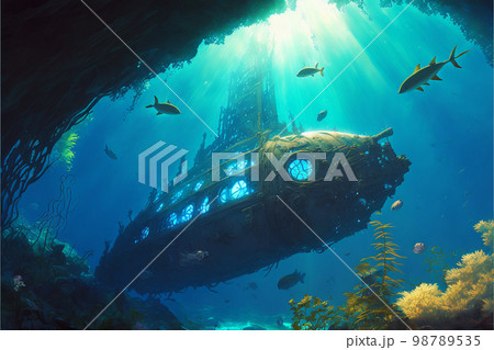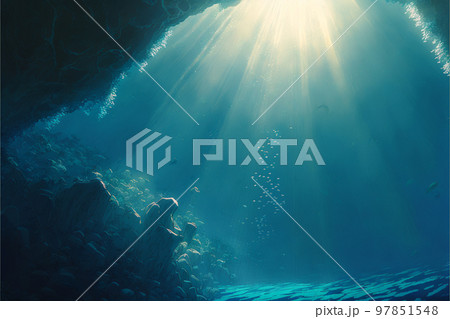 水中 光 海底 魚 海 太陽 深海 泡 海藻 洞窟 青