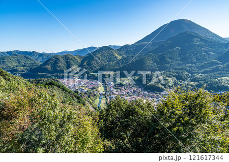 秋の太皷谷稲成神社から見た津和野城 島根県鹿足郡津和野町