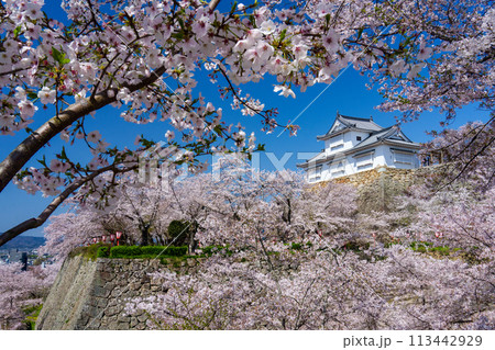 鶴山公園(岡山県津山市)津山城に咲く満開の桜<日本さくら名所100選>