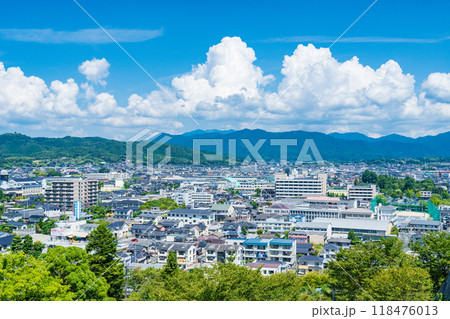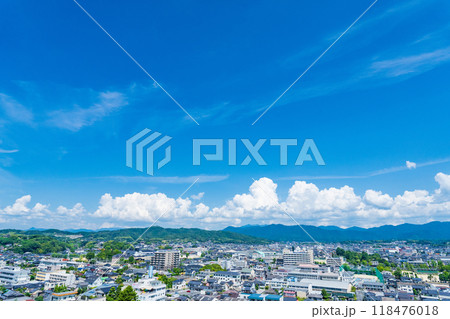 岡山県津山市 津山城から見渡す夏の津山の町並みと中国山地