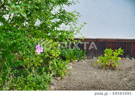 【重要伝統的建造物群保存地区】城東町並み保存地区の箕作阮甫旧宅の庭のムクゲ 岡山県津山市