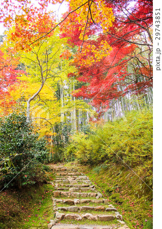 直指庵の秋、時雨の参道に紅葉、愛逢い地蔵尊