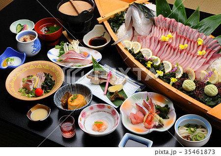 温泉宿の食事 ぶりの活け造り 舟盛り