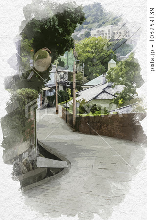 水彩画風 長崎 オランダ坂 長崎県長崎市