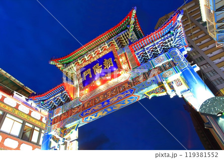 【神奈川県】横浜中華街の朝陽門の夜景