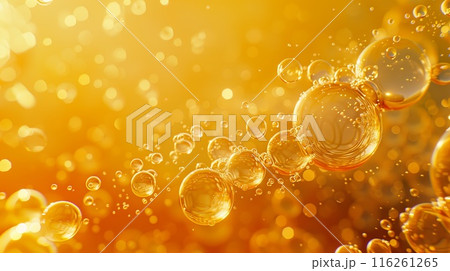 Radiant ink bubbles bursting with vibrant hues on a golden yellow backdrop