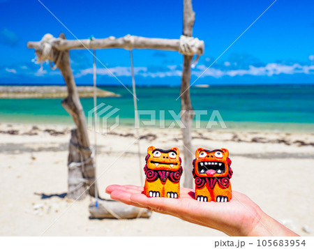 南国の青い空とシーサー