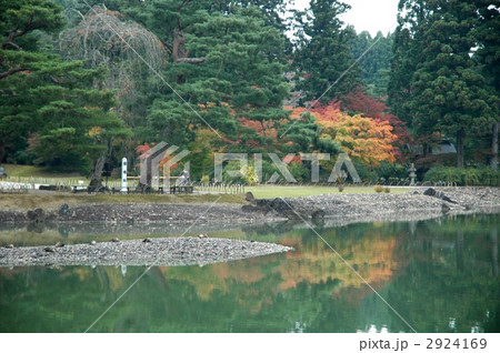 秋の毛越寺浄土庭園 大泉が池 州浜 岩手県