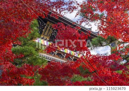 くろ谷 金戒光明寺 紅葉に包まれた山門