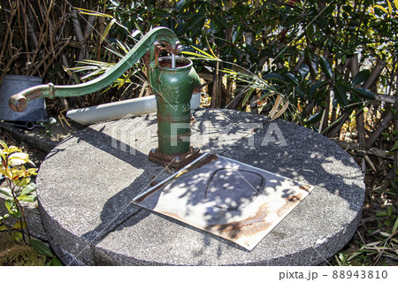 非常災害時の生活用水、飲料水にも活用できる庭先にある古井戸と手押しポンプ