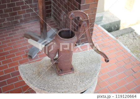 大正時代から一般家庭の台所や裏庭に広く普及していった、昔懐かしい井戸用手押しポンプ。