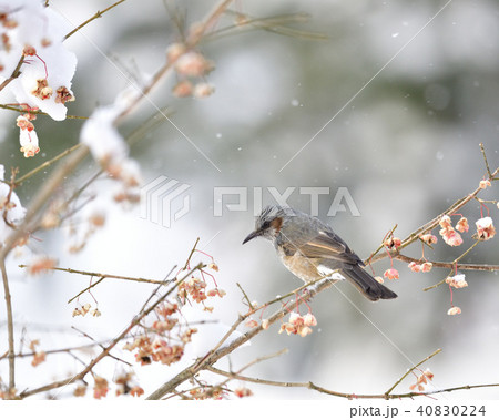 雪とマユミとヒヨドリ