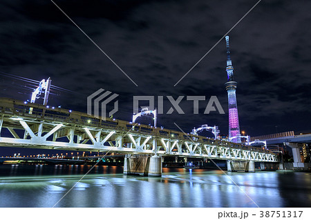 「東京都」夜明け前の吾妻橋の風景 都市風景