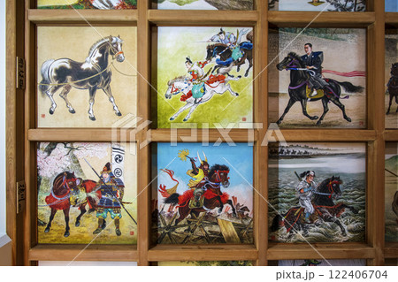 東京都台東区 矢先稲荷神社 拝殿内格子天井 日本馬乗史100枚の天井絵が奉納されている神社