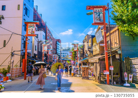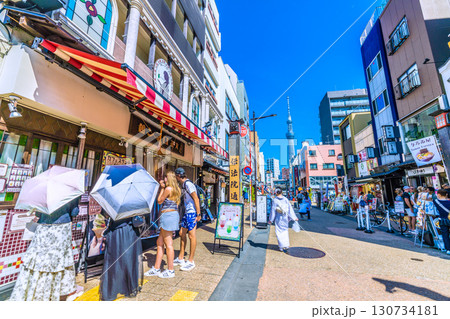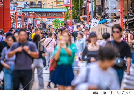 日本の東京都市景観 外国人観光客らで賑わう伝法院通りや仲見世通りなどを望む。危険運転自転車が横行…