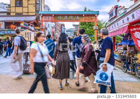 日本の東京都市景観 外国人観光客らで賑わう伝法院通りや仲見世通りなどを望む。危険運転自転車が横行…