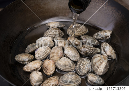 あさりのワイン蒸し あさりの酒蒸しを作る工程