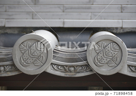 「鷹の羽紋」の軒丸瓦(花岳寺・山門/兵庫県赤穂市加里屋1992)