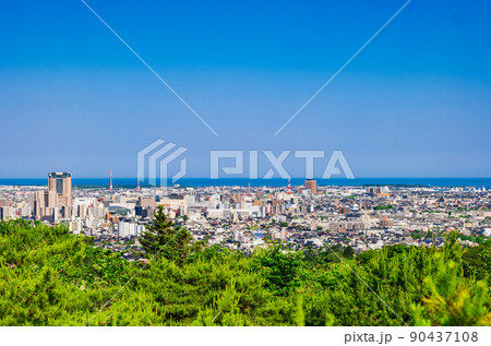上空より望む:石川県金沢市(金沢駅中心部~河北湖付近)