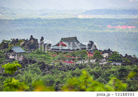 鬼押出し園の浅間山観音堂と浅間山(群馬県吾妻郡嬬恋村)