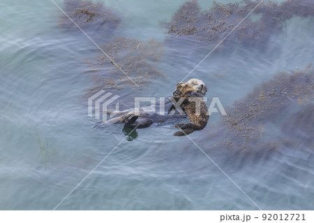 北海道 浜中町 霧多布岬のアイドル 仲良し ラッコの親子 7月