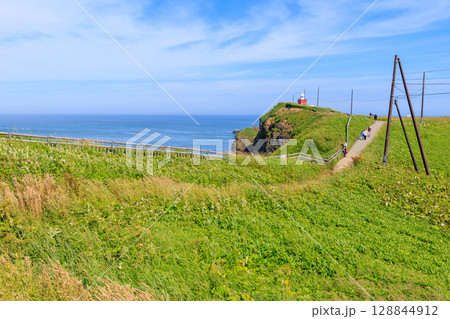 北海道浜中町の風景 霧多布岬の灯台と青い空 7月