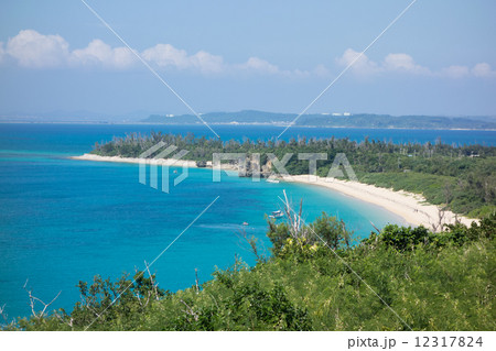 沖縄県津堅島のにんじんの形をした展望台から見える風景