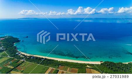 【沖縄・津堅島・空撮写真】津堅島トゥマイ浜と青い海を真上から空撮③