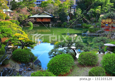 相楽園(三田藩士 小寺氏の邸宅と庭園)池泉回遊式日本庭園と舟屋形 神戸市中央区下山手通