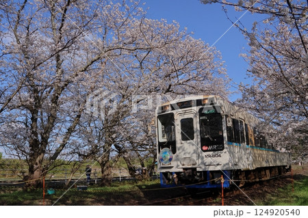 桜に抱かれる松浦鉄道の気動車
