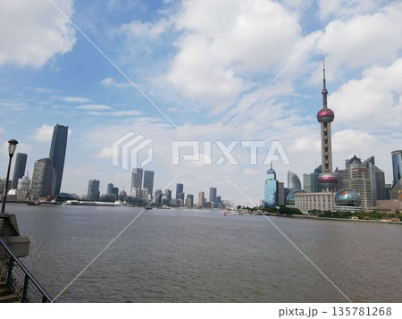 上海 東方明珠電視塔,(オリエンタルパールタワー) 外灘(がいたん)から望む