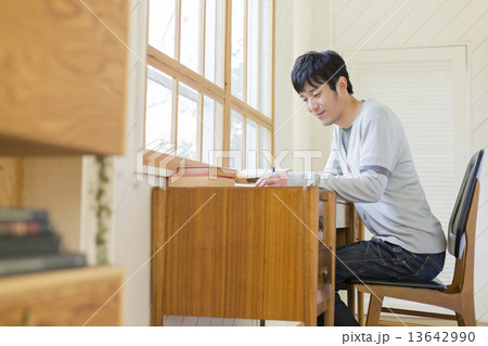 勉強をする男子学生
