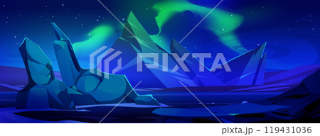 North pole arctic. White drifting and melting glacier in ocean, snow mountains iceberg polar winter season cartoon vector illustration