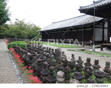 彼岸花が咲く奈良市の元興寺(禅室・浮図田)