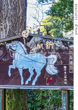 東京都大田区 千束八幡神社 境内 源頼朝と名馬・池月(いけづき)伝承の神社