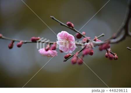 ピンク色の浮牡丹のきれいな梅の花の枝の接写