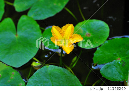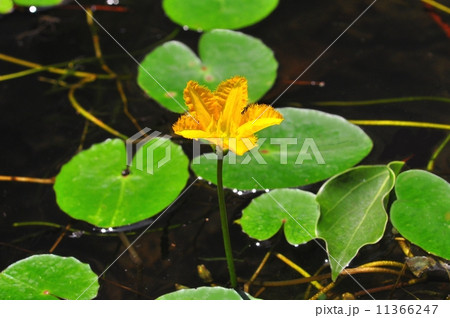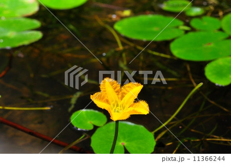 湖沼やため池に生息する水草のガガブタの花【ミツガシワ科アサザ属】