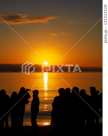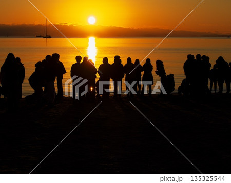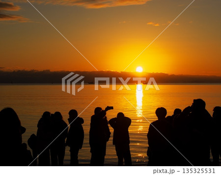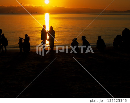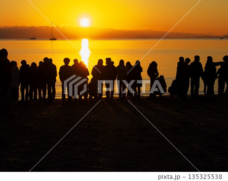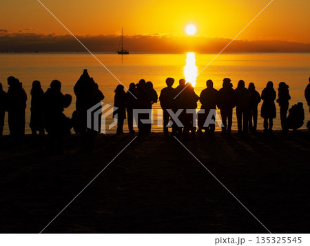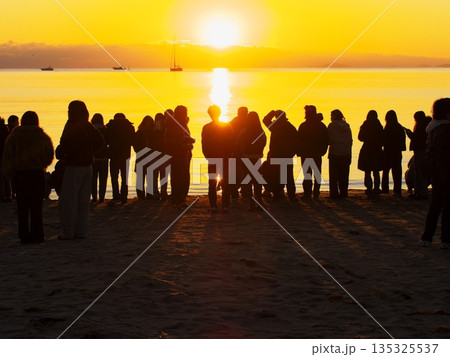 2026年元旦に御来光を拝むため御殿場海岸に集まった人々