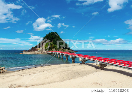 【山形県鶴岡市:由良海岸白山島】由良海岸のシンボル白山島は頂上に白山神社のある小さな島。