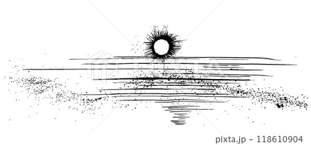 初日の出 海に沈む太陽 手書きの毛筆イラスト