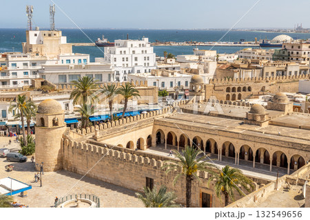 Great Mosque of Sousse Overlooking the Harbor and Blue Sea, Tunisia
