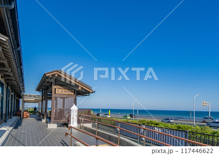 道の駅潮見坂 足湯潮見坂 展望デッキから白須賀海岸の絶景